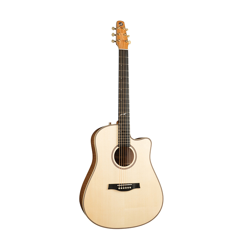 The Cameo matches flame maple back and sides with a select solid spruce top. This guitar also features a high-gloss Custom Polished finish. The result is a bright sound with lots of projection. The Cameo is a great performance guitar that works well on stage with on-board electronics installed. This model includes L.R. Baggs Element electronics.