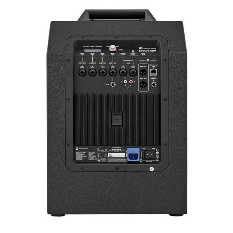 Electro Voice EVOLVE 50M یک سیستم بسیار جمع و جور و منعطف PA است که برای استفاده در سالن های کوچک تا متوسط ایده آل خواهد بود. با وجود قدرت هزار واتی Electro Voice Evolve 50M شما می توانید از آن به صورت مستقل استفاده کنید و یا آن را برای استفاده در سالن های بزرگتر به اسپیکرها و دیوایس های دیگر متصل نمایید. این سیستم PA شامل سه بخش اصلی می باشد: یک ووفر قدرتمند 12 اینچی، یک پایه ی سبک آلومینیومی و اسپیکر ستونی شامل هشت درایور 1.5 اینچی نئودیمیومی. EVOLVE 50M دارای طراحی موج بر اختصاصی خود می باشد که انتشار صدای 120 درجه ای در محور افقی و 40 درجه ای در محور عمودی را ممکن می سازد تا حتی افرادی که انتهای سالن قرار دارند هم به خوبی صدا را بشنوند. این سیستم دارای یک میکسر دیجیتال آنبُرد هشت کاناله می باشد که امکان متصل کردن میکروفن، گیتار، انواع سازها و... را فراهم می کند. شما با استفاده از اپلیکیشن موبایل QuickSmart می توانید این سیستم را به صورت وایرلس کنترل کنید؛ کانکشن بلوتوث هم به منظور استریم کردن موسیقی برای Electro Voice Evolve 50M در نظر گرفته شده است.