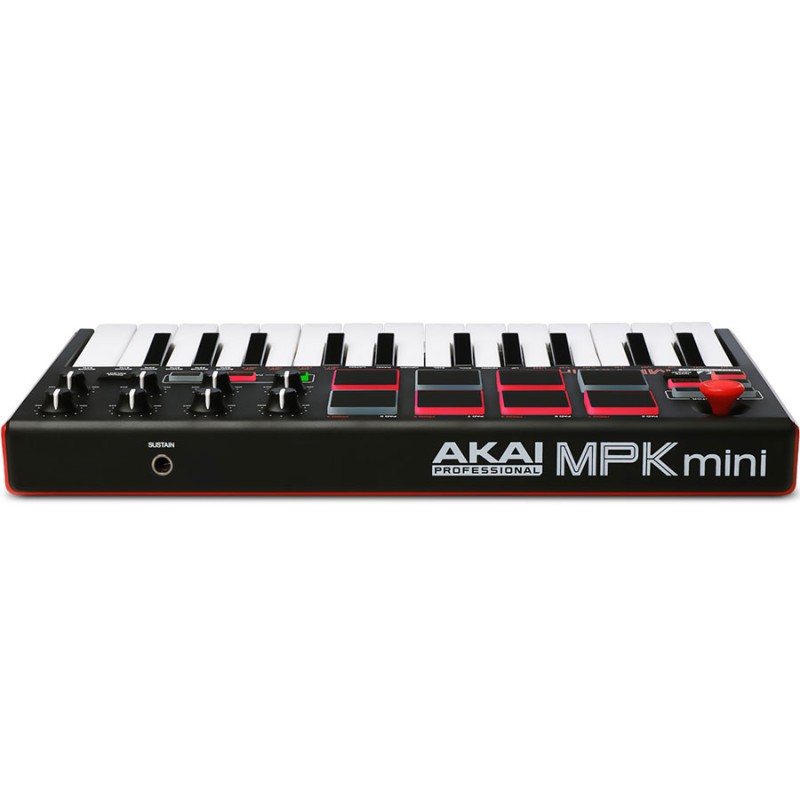 اگر موزیسینی هستید که مدام در حال رفت و آمدید، Akai MPK Mini Mk II امکان کنترل کردن موزیکتان را هر کجا که باشید فراهم می کند. این میدی کنترلر که به راحتی در کوله شما جای می گیرد، 25 عدد کلاویه مینی حساس به velocity، دکمه های تغییر اکتاو و دکمه ای برای انجام وظایف پارامتر mod و pitch-bend را در اختیارتان قرار می دهد. شما همچنین به هشت عدد پد حساس به velocity با نور پس زمینه همراه با قابلیت Note Repeat به علاوه هشت دکمه ی چرخنده ی Q-Link دسترسی خواهید داشت. همچنین روی این کنترلر یک آرپژیاتور با حالت ها و تنظیمات مختلف قرار گرفته است.