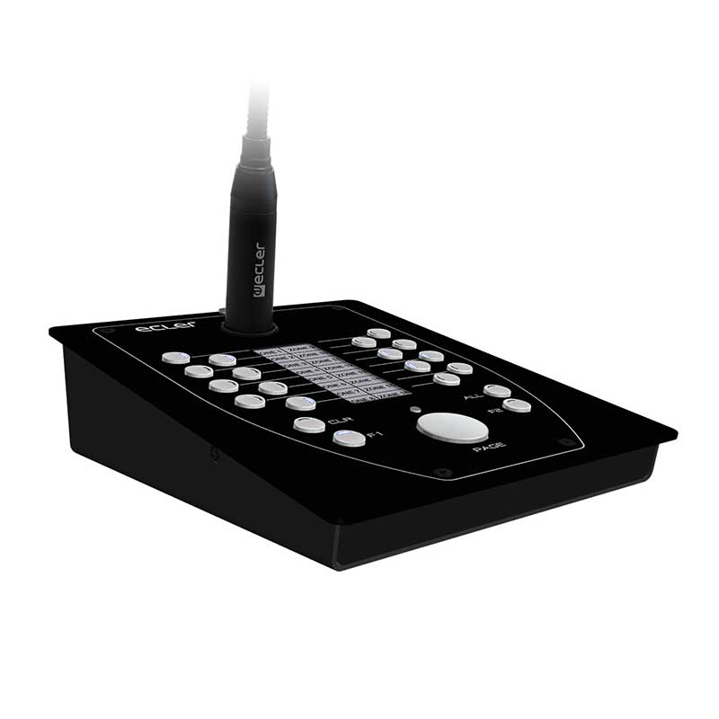 eMPAGE is a desktop paging station compatible with ECLER eMIMO1616 digital audio matrix