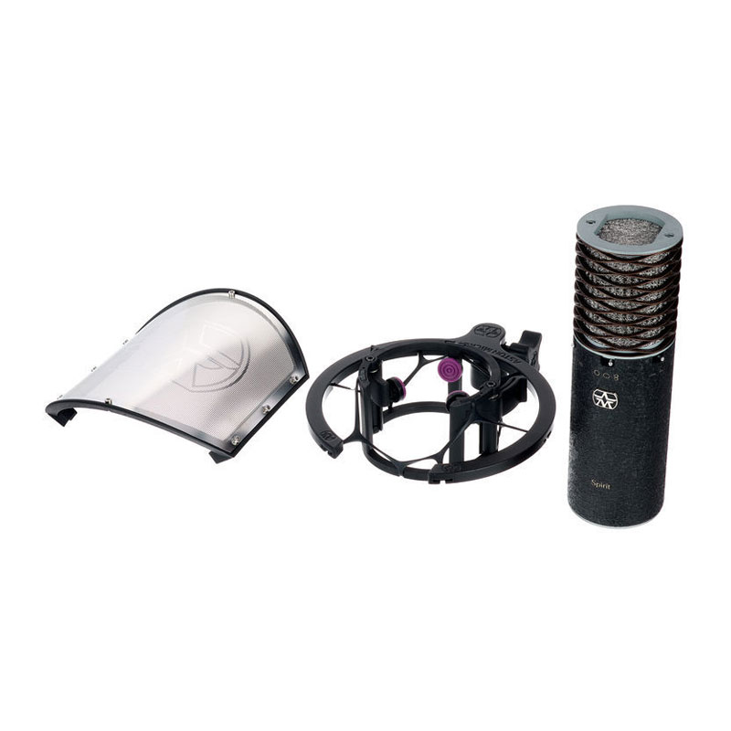 Aston Microphones Spirit یک میکروفون کاندنسر دیافراگم بزرگ با ظاهری منحصر به فرد است که عملکردی فوق العاده دارد. این میکروفن دارای سه الگوی قطبی و یک کپسول یک اینچی با روکش طلا می باشد. الگوهای قطبی کاردیود، چند جهته و فیگر8 به همراه پد 10/20dB و فیلتر 80Hz highpass باعث شده تا Spirit یک میکروفون همه کاره برای استفاده در استودیو و روی استیج باشد. Spirit صدای باز و دلنشين به همراه هارمونیک های درخشان دارد. صدای این میکروفن دقیق است و برای طیف گسترده ای از کارها قابل استفاده می باشد، مخصوصا برای وکال و گیتارهای آکوستیک. کیفیت ساخت این میکروفون خارق العاده است؛ کمپانی Aston کپسول این میکروفن را به صورت دست ساز تولید کرده و آن را با یک ترانسفورماتور سطح بالا و مدار بالانسی متشکل از قطعات بسیار باکیفیت همراه نموده است. میکروفون Spirit صدای سورس شما را دقیق و شفاف بازتولید می کند و بدون این که صدای تیزی داشته باشد، جزئیات فرکانس های بالا را به خوبی دریافت می کند. اگر به دنبال یک میکروفن با کیفیت و با قیمت مناسب هستید، Aston Microphones Spirit گزینه ی فوق العاده ای برای شماست.