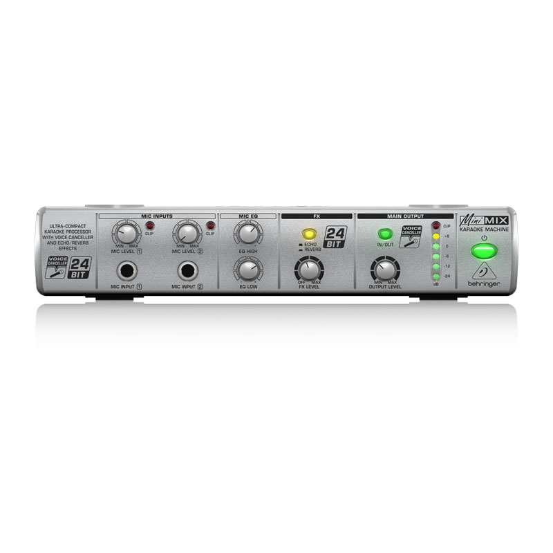 کارائوکه جالب است و کنسل کننده ی وُیس Behringer Minimix MIX80 این کار را برای شما آسان می کند. شما نیاز به هزینه کردن برای یک سیستم گران قیمت انحصاری برای کارائوکه ندارید، تنها کافی ست پلیر موزیک، میکروفن ها و اسپیکرهای خود را به این پری امپ متصل کنید. یک اکولایزر دو بانده به بهینه شدن سیگنال های میکروفن کمک می کند و افکت های داخلی اکو و ریورب باعث می شود بتوانید صدایتان را جذاب کنید. MIX800 وکال هایی که در مرکز تصویر استریو باشند را کنسل می کند.