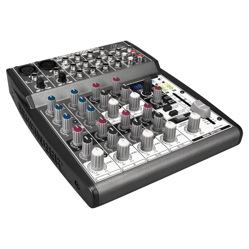 6-ch Mixer with Two Xenyx Mic Preamps, Four Stereo Channels, 3-band EQ, 100 Effects Presets, and 1 FX/Aux Send Per Channel