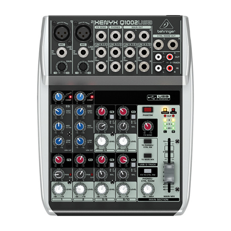 10-input, 2-bus Analog Mixer with 3-band EQ, and USB Audio Interface