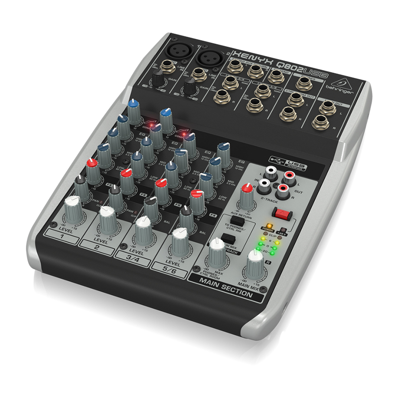 8-input, 2-bus Analog Mixer with 3-band EQ and USB Audio Interface
