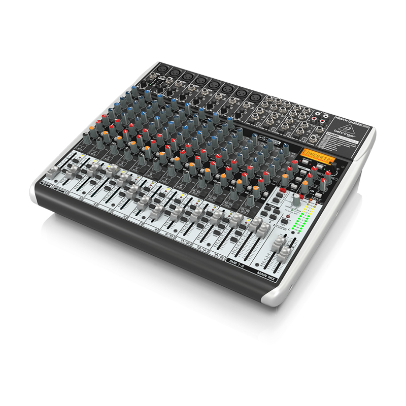 22-input, 2/2-bus mixer with 60mm faders, 3-band EQ, Onboard Effects, and USB Audio Interface