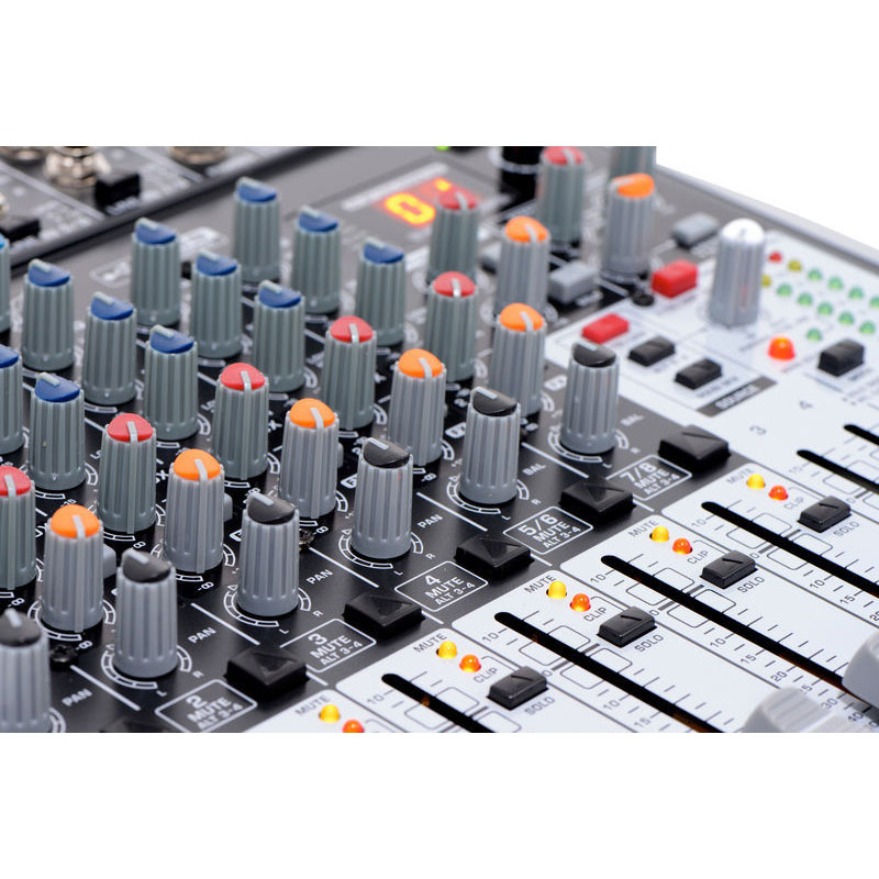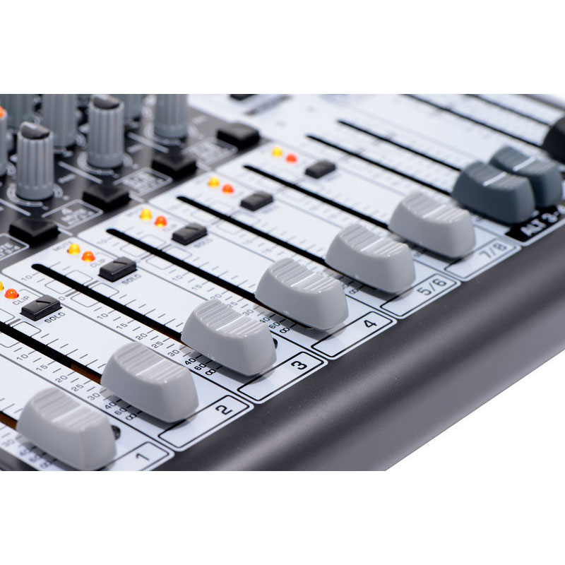 8-channel USB Mixer with One-knob Compression, 2 Aux Sends, 2 Busses, Built-in FX, and 3-band EQ Per Channel