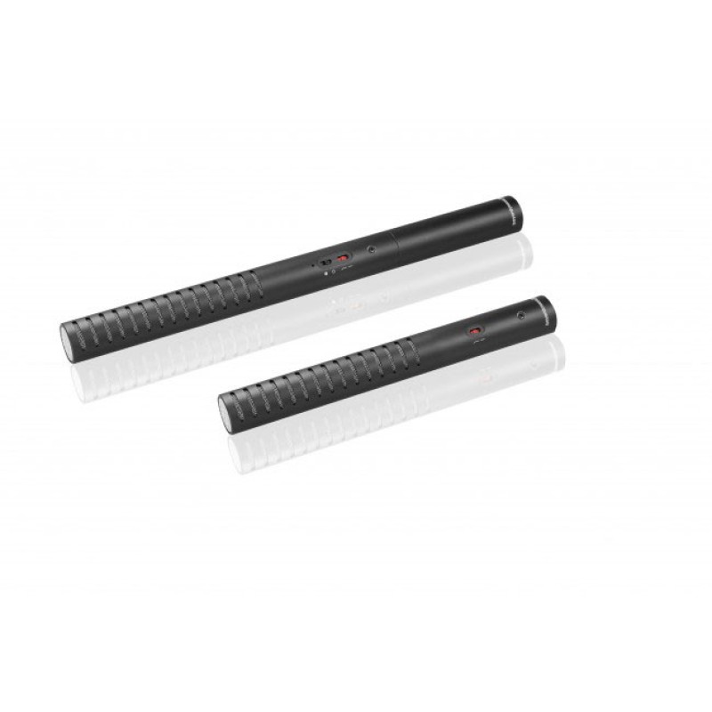 Electret condenser shotgun microphone for battery- or phantom power