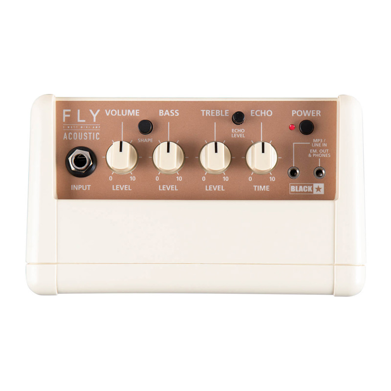 Blackstar FLY 3 Acoustic یک امپلی فایر آکوستیک پرتابل با ویژگی های فراوان است. با متصل کردن گیتارهای آکوستیک-الکتریک، یوکلله، ماندولین و دیگر سازها، کیفیت صدای فوق العاده ای از این امپ دریافت خواهید کرد. با سوییچ انتخاب shape می توانید پاسخگویی فرکانسی یکدست یا میدرنج کات شده با بوست هایی در فرکانس های بالا یا بیس داشته باشید. با افکت اکویی که برای این امپ در نظر گرفته شده می تواند صدای پولیش شده ای دریافت کنید. علاوه بر این، شما می توانید FLY 3 Acoustic را با یک FLY Acoustic 103 (به صورت جداگانه به فروش می رسد) ترکیب کنید تا یک ستاپ 6 واتی با صدای استریوی پرحجم داشته باشید.