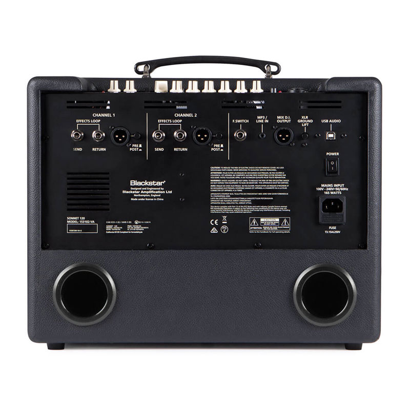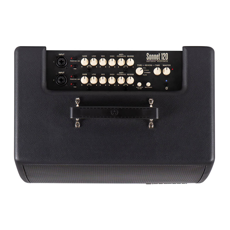 120-watt, 1x8" Acoustic Guitar Combo Amplifier with Mic/Instrument Inputs, +48V Phantom Power, Pad and Polarity Reverse Functions, 3-band EQs with Shape Buttons, Highpass Filter, Anti-feedback System, Brilliance Control, 4 Reverbs, Dual Effects Loops, USB/XLR Outputs, Line Input/Bluetooth, and Tilt-back Stand
