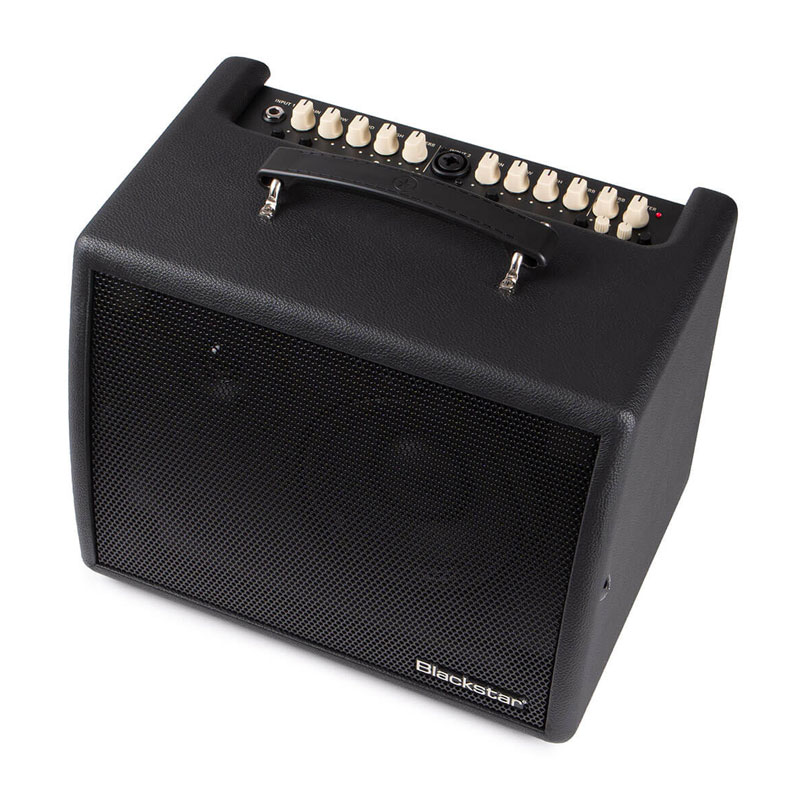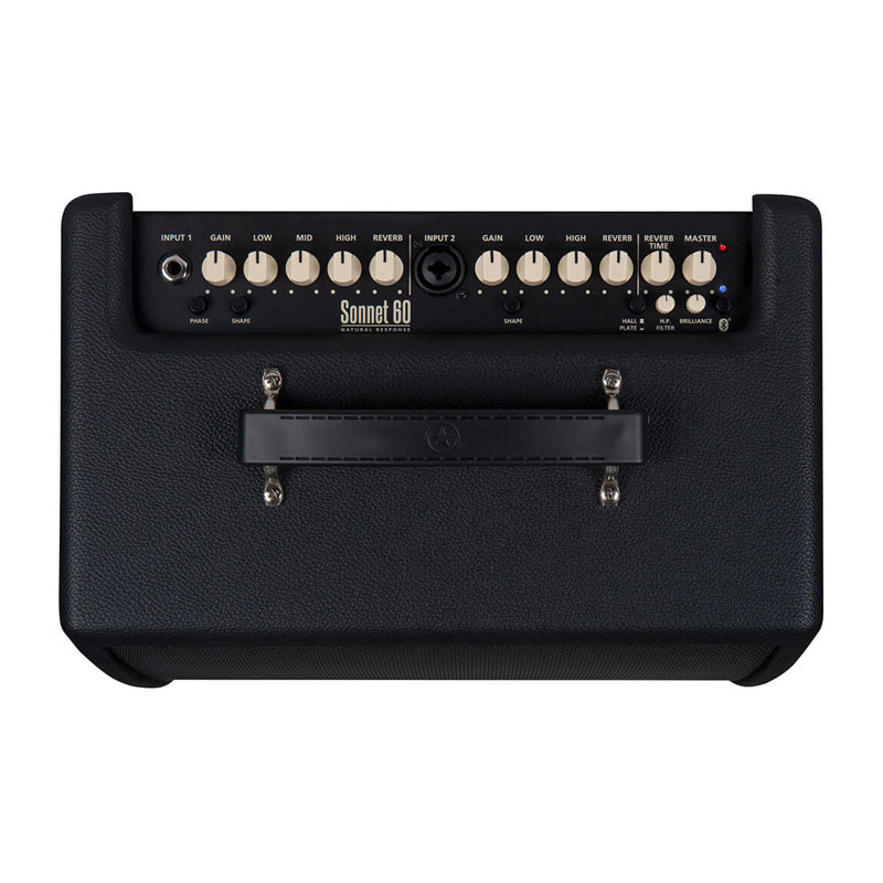 60-watt, 1x6.5" Acoustic Guitar Combo Amplifier with Mic/Instrument Inputs, Polarity Reverse Function, 3-band/2-band EQs with Shape Buttons, Highpass Filter, Brilliance Control, 2 Reverbs, USB/XLR Outputs, Line Input/Bluetooth, and Tilt-back Stand
