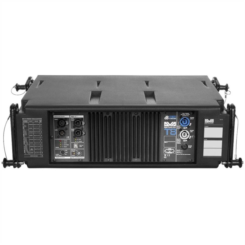 DVA T8 is a 3-way module equipped with a 8” bass reflex neodymium woofer, 1 horn loaded 6.5” midrange with a 2” voice coil and phase plug device, and two 1”drivers with constant directivity horn