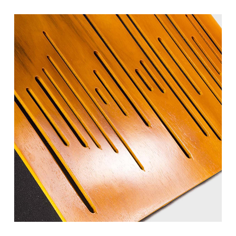 لایه سطحی کار شده روی این پنل از جنس چوب است که در تقابل با روکش کربنی کار شده، باعث عایق شدن پنل نسبت به حرارت و رطوبت می شود که ترکیب هوشمندانه چوب با فوم پلیمری مخصوص با دانسیته بالا، باعث بهبود قدرت جذب پنل شده است.