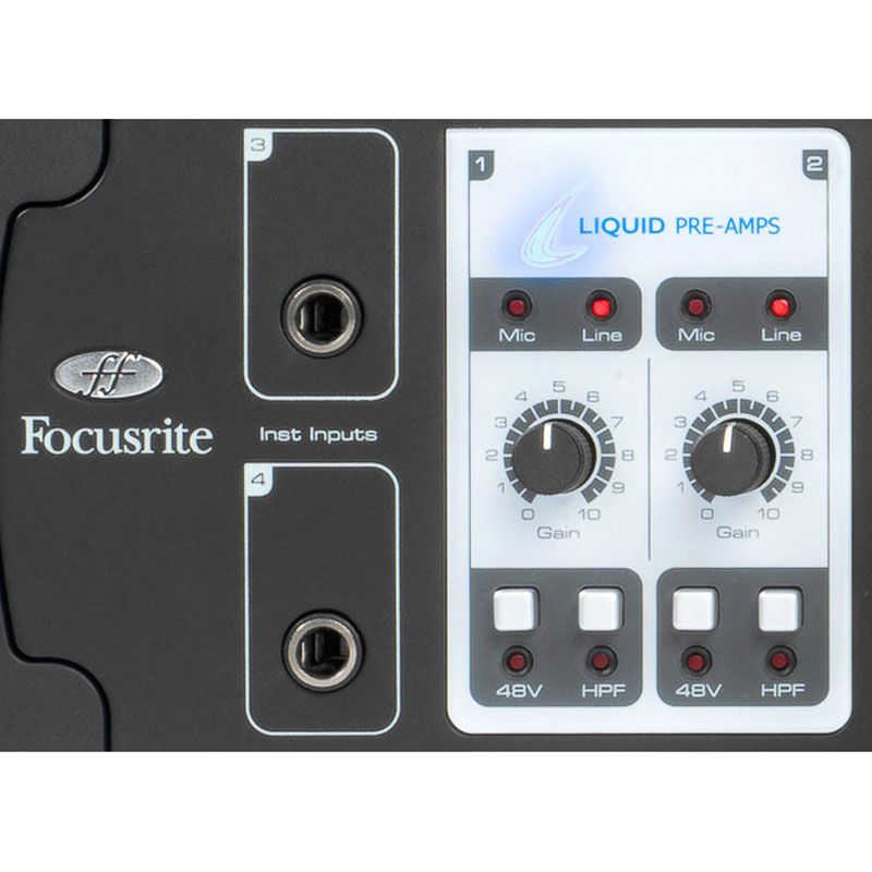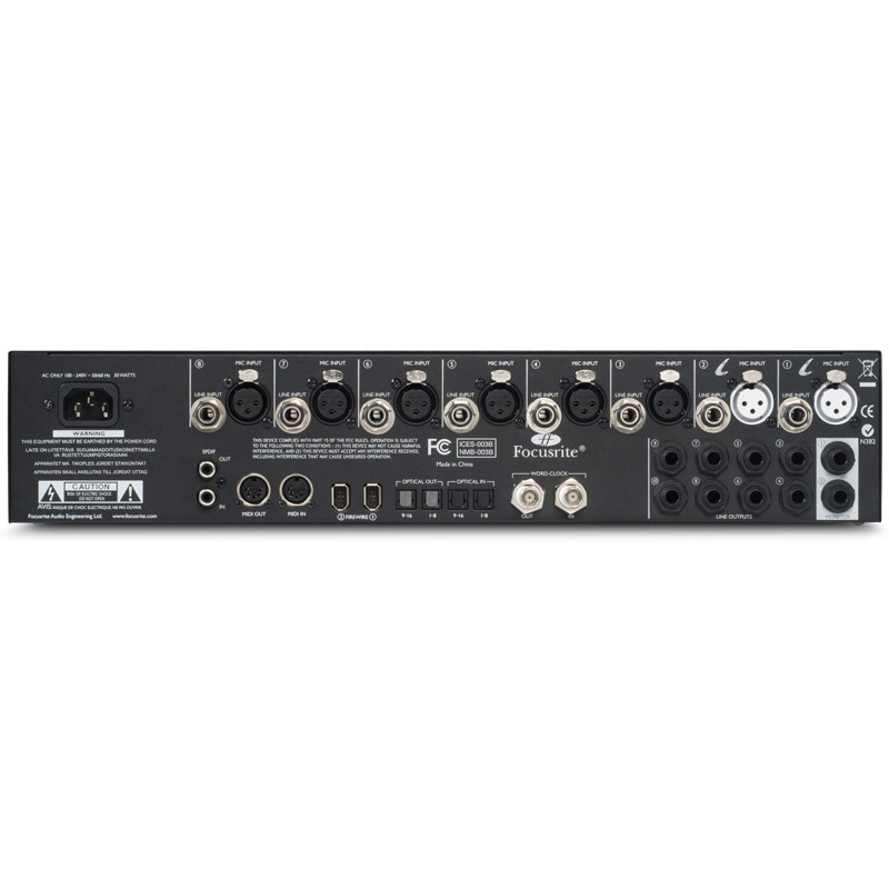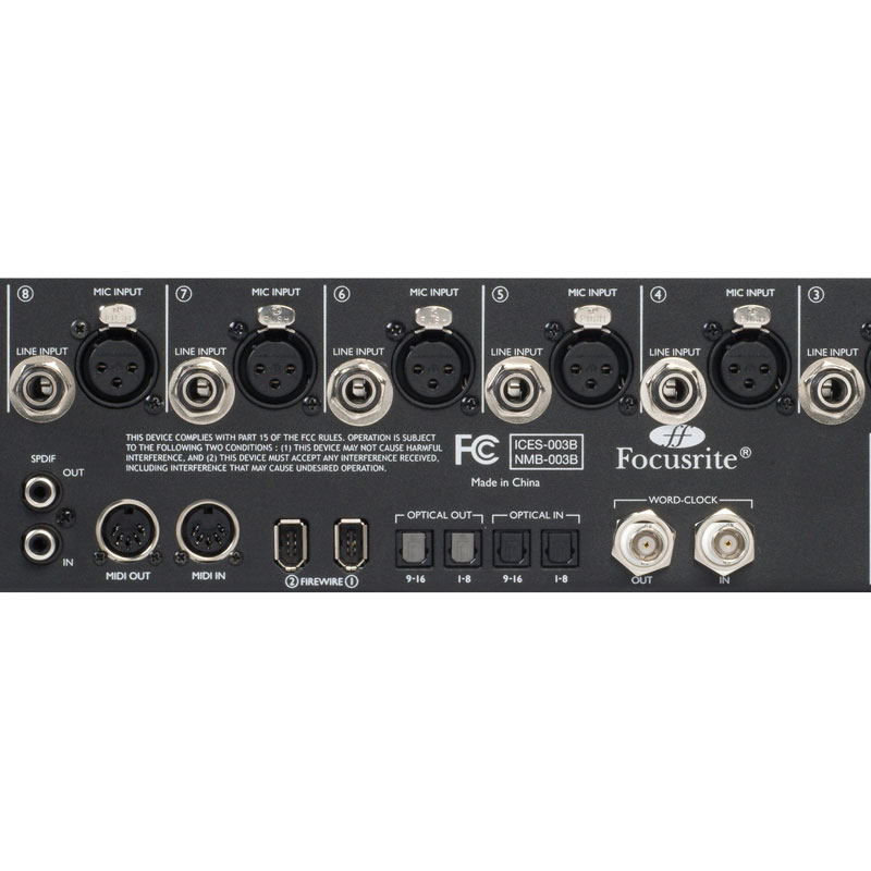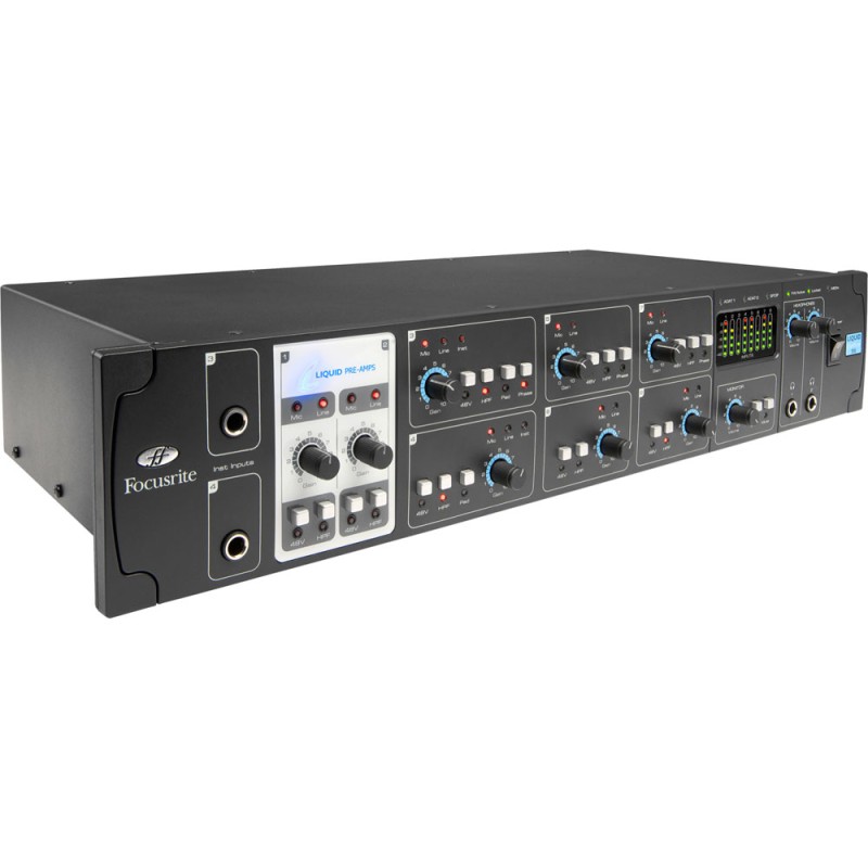 28-in/28-out FireWire Audio Interface with 2 Liquid Microphone Preamplifiers (10 Models), 6 Focusrite Preamplifiers, ADAT I/O, S/PDIF, Word Clock, 18x16 DSP Mixer, 10 Line Outputs, and VST/AU Plug-in Suite