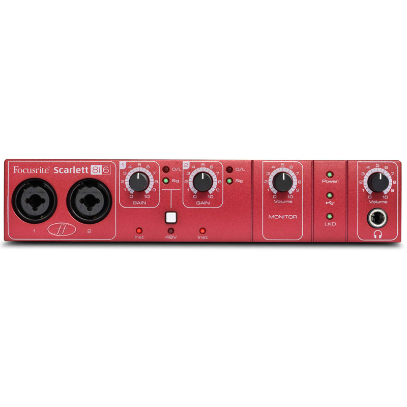 USB 2.0 Audio Interface, 6-in/6-out, with 2 Microphone/Instrument Preamplifiers, 24-bit/96kHz, and Focusrite Scarlett Plug-in Suite