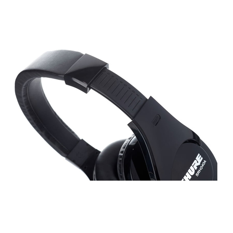 هدفون Shure SRH240A با درایورهای داینامیک نئودیمیومی 40 میلیمتری و محدوده ی پاسخگویی فرکانسی وسیع، بیس های پرحجم و فرکانس های بالای پر از جزئیاتی را به شما ارائه می دهد.