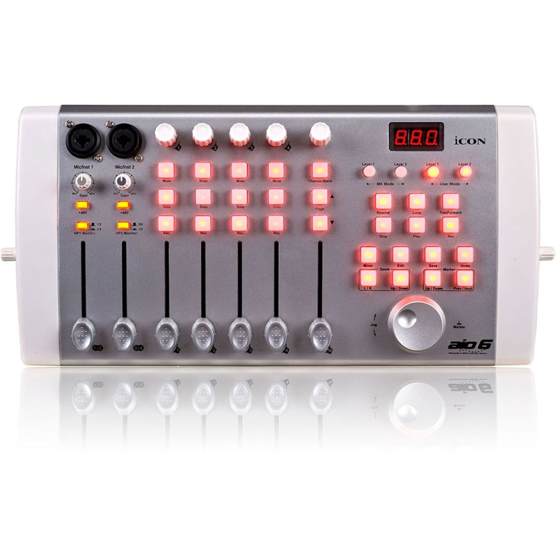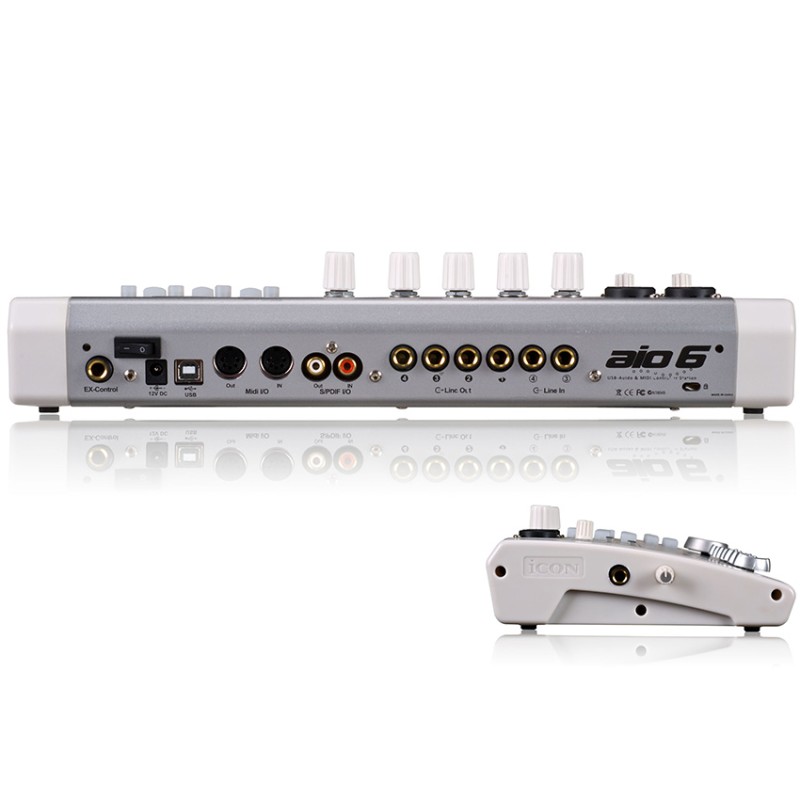 این محصول دارای 7 ولوم خطی بوده که 2 ولوم مختص ورودی های آن ، 4 ولوم فیدر برای کنترل لاین های نرم افزار و یک مستر فیدر می باشد. AIO6 رابط خود را USB 2.0 انتخاب کرده است که این امر موجب سرعت و کیفیت در انتقال اطلاعات او شده است. این محصول دارای نرخ نمونه برداری (24bit/192KHz) می باشد و مجموعا دارای 5خروجی و 5 ورودی به همراه MIDI In/Out می باشد. سازگاری این محصول با سیستم عامل های مختلف از جمله ویندوز 7 دیگر مزیت آن است. شما شایبسته کیفیت هستید.