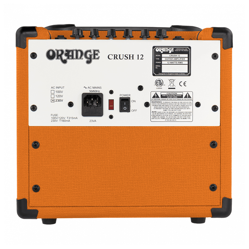 The Crush 12 is the smallest of the full-format Crush models designed for guitarists with a no-nonsense attitude to quality analogue tone. This single channel combo features a powerful 3 band EQ and dedicated Overdrive control for tones ranging from crisp and clean through to vintage Orange crunch. The Crush 12’s custom 6″ Voice of the World speaker ensures the amp always remains punchy and articulate, despite its tiny dimensions. Our new CabSim-loaded headphone output means huge tones at whisper quiet volume, making this combo an ideal practice partner for players of all levels.