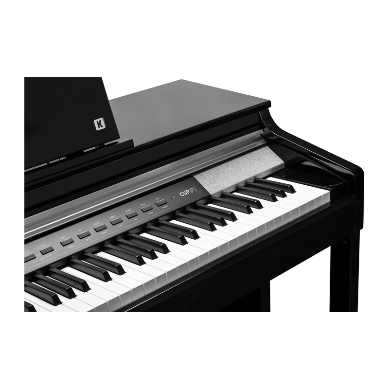 The Kurzweil CUP | P1 is a digital piano with H1 Ivory keyboard, 88 full-size keys and a sturdy wooden stand.