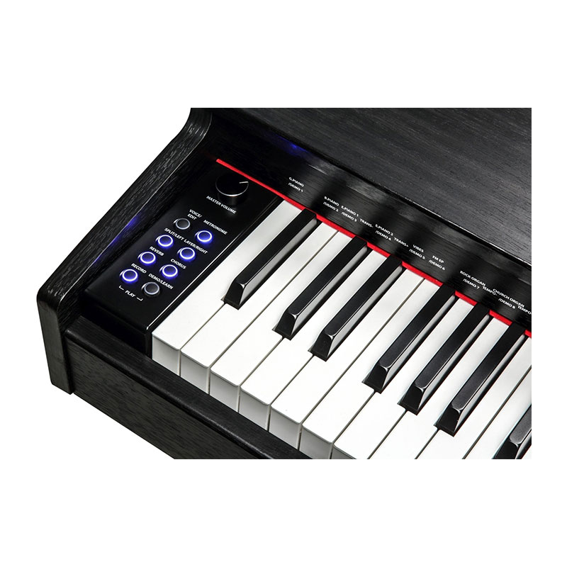 پیانوی دیجیتال Kurzweil M70 نه تنها ظاهر و صدای فوق العاده ای دارد، بلکه ویژگی های جذاب دیگری هم به آن اضافه شده است. یک ریکوردر آنبُرد MIDI که استفاده از آن بسیار ساده است، به شما اجازه می دهد اجراهایتان را ضبط کنید. همچنین پورت USB امکان انتقال دیتای audio و MIDI از پیانو به دیگر دستگاه ها را فراهم می کند. این پیانو دارای بیش از 400 قطعه ی موسیقی برای تمرین و گوش دادن می باشد و ظاهر جذاب و خوش استایل آن باعث شده تا برای هر خانه ای ایده آل باشد.