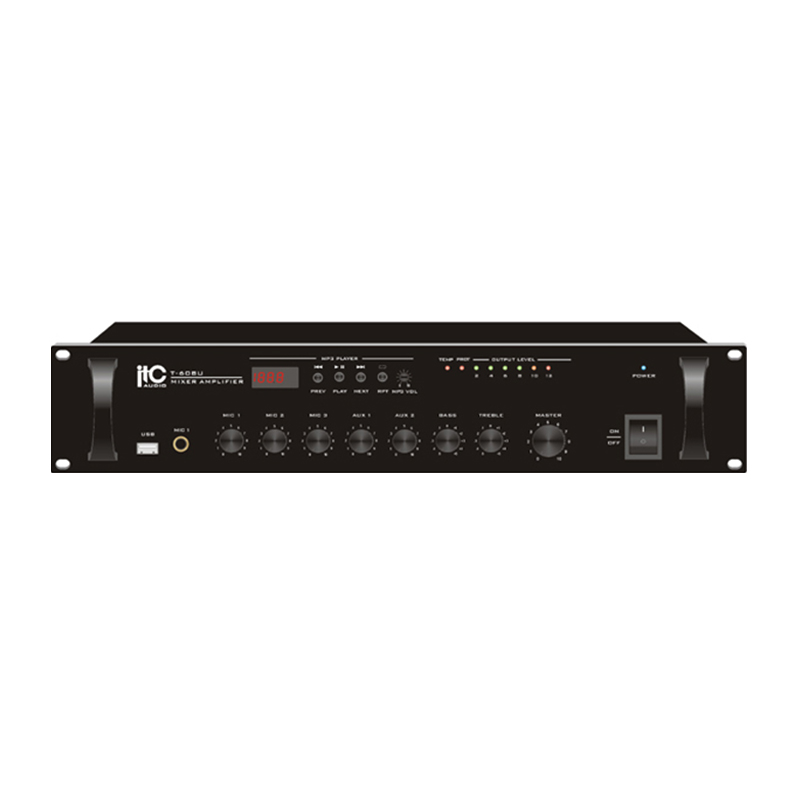 The USB mixer amplifiers have power ratings from 60W.It is featured of three microphone inputs, two aux inputs and one EMC input.