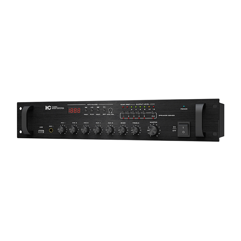 The USB mixer amplifiers have power ratings from, 60W, 120W to 240W. They are featured of three balanced microphone inputs, two aux inputs and one EMC input.