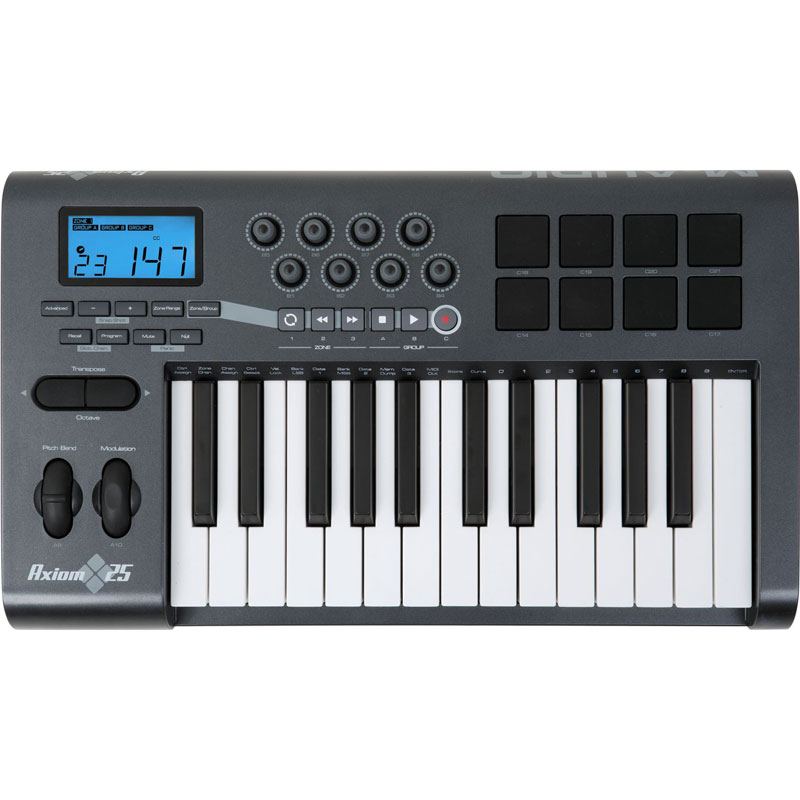 میدی کنترلر Axiom 25 راهکاری عالی برای حل این مشکل است. این کیبرد دارای 25 کلید waterfall-style و حساس به velocity است. Axiom 25 همچنین دارای کلیدهای transport برای معمول ترین عملکردها مانند stop، play، record، fast forward و rewind و 8 کلید روتاری برای پارامترهای مختلف می باشد. شما شایسته کیفیت هستید.