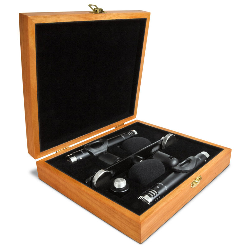 Two Professional small-capsule condenser microphones, 3/4"-diameter, 6-micron mylar evaporated gold diaphragms, Thermal diaphragm treatment yields 2dB SPL boost over original model