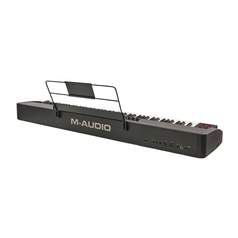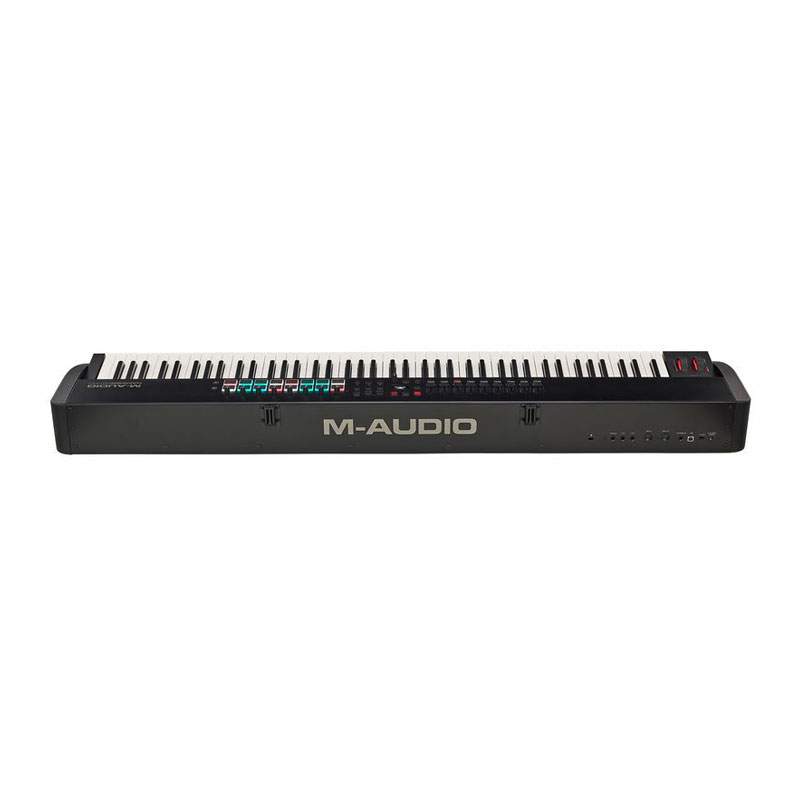 بسیاری از کیبوردیست ها M-Audio Hammer 88 را به واسطه ی داشتن بدنه ی مقاوم و اکشن کلاویه های مشابه پیانو برای استفاده در استودیو و روی استیج انتخاب می کنند. کلاویه های چکشی سنگین این کنترلر به شکل صادقانه ای تمام جزئیات اجرای شما را منتقل می کنند تا خواسته های سخت پسندترین پیانیست ها نیز برآورده شود. حالا کمپانی M-Audio با مدل Hammer 88 Pro بسیاری از مشخصات مدل محبوب Hammer 88 را به بهترین حالت رسانده است. به ورژن Pro ویژگی های زیادی اضافه شده است تا یک میدی کنترلر با تمام امکانات در دسترس شما قرار داشته باشد. از جمله ی این ویژگی های جدید می توان به این موارد اشاره کرد: پشتیبانی از افتر تاچ، پدهای حساس به velocity با نور پس زمینه ی رنگی، دکمه های فشاری و چرخشی و فیدرهایی با امکان اختصاص دادن وظایف مختلف به آن ها، یک آرپژیاتور، کانکشن های بیشتر، کنترل های ترنسپورت نرم افزار آهنگسازی و... با در نظر داشتن مجموعه ی نرم افزاری قدرتمندی که کنار این کنترلر به شما عرضه می شود و قیمت رقابتی محصول، باید گفت که انتخاب کردن M-Audio Hammer 88 Pro نیازی به فکر کردن ندارد.