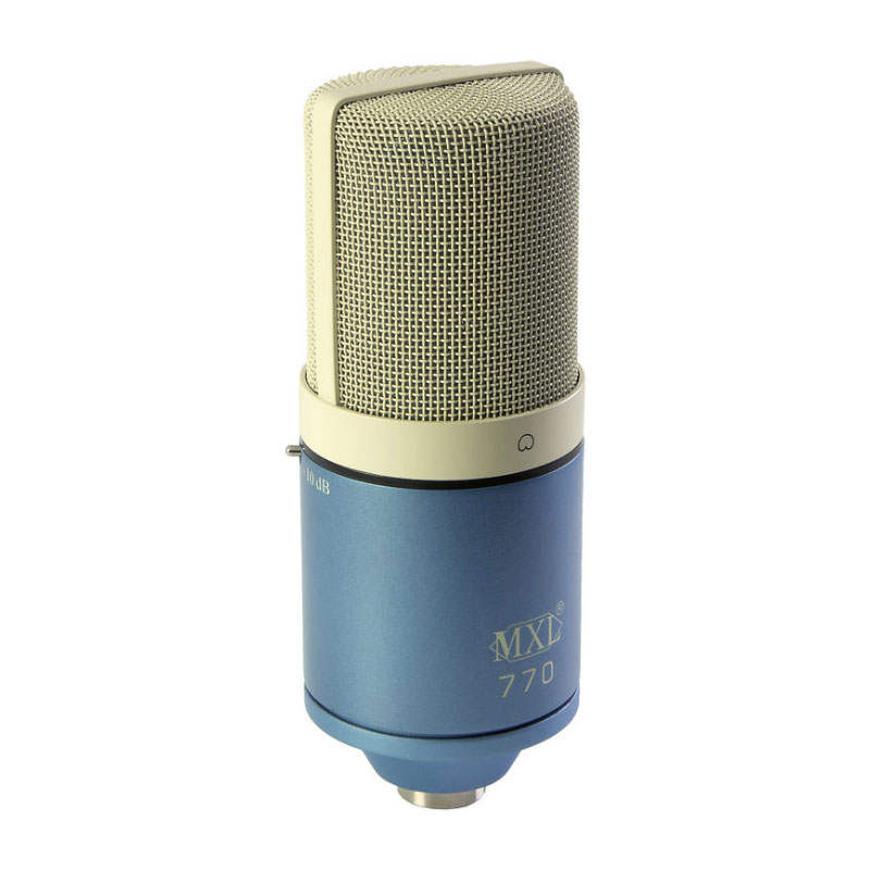میکروفن محبوب MXL 770 یک میکروفن کاندنسر چند کاره است که وکالیست ها به خاطر پاسخگویی فرکانسی بم و فرکانس های بالای شفاف این میکروفن تمایل زیادی به استفاده از آن دارند. برای رسیدن به چنین کیفیتی، در ساخت این میکروفن از یک پری امپ بسیار با کیفیت FET و خروجی بالانس عاری از ترانسفورماتور استفاده شده تا پاسخگویی فرکانسی وسیع و نویز پایینی ایجاد شود. از دیگر ویژگی های این میکروفن می توان به وجود یک فیلتر Low cut برای حذف فرکانس های بم ناخواسته اشاره کرد. همچنین یک پد 10dB هم برای این میکروفن در نظر گرفته شده تا بتوانید طیف وسیعی از منابع صوتی را با این میکروفن ضبط کنید. در پکیج MXL 770 یک شاک مونت برای کاهش ارتعاشات مکانیکی و یک کیس مستحکم هم قرار داده شده است. MXL 770 ترکیب فوق العاده ای از کیفیت، انعطاف و ارزش خرید بالاست که قابلیت استفاده هم در استودیوهای حرفه ای و هم در استودیوهای خانگی را دارد.