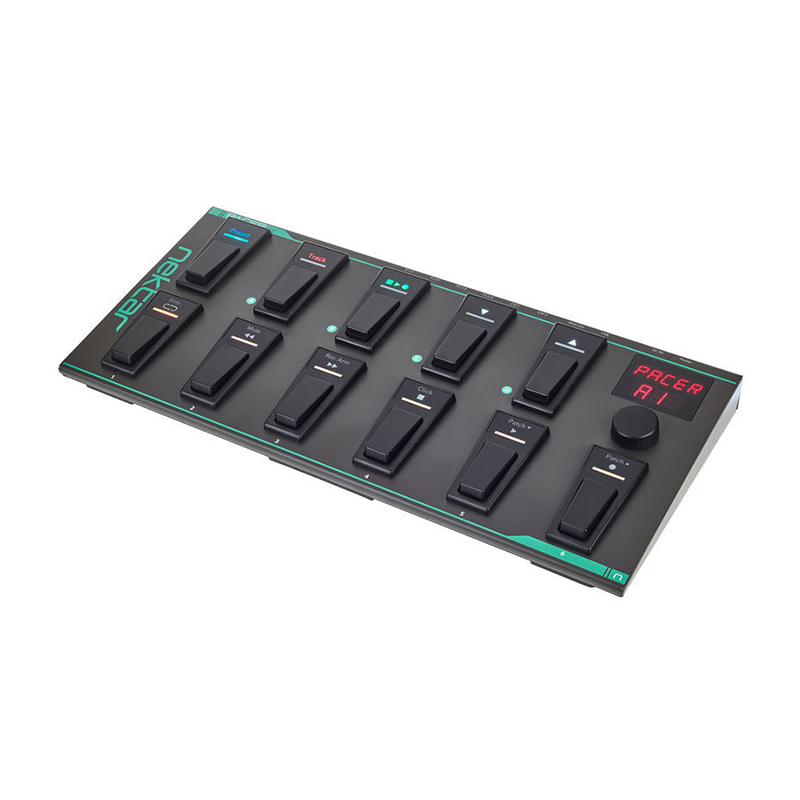 با Nektar Pacer MIDI Foot Controller کنترل نرم افزار آهنگسازی یا تجهیزات گیتار خود را بدست بگیرید. این فوت کنترلر دارای چراغ های رنگی اختصاصی LED برای نمایش پارامترهای اختصاص یافته می باشد و به شما اجازه می دهد نرم افزارهایی مانند Ableton Live, Steinberg Cubase, Bitwig Studio, Apple Logic، GarageBand، Avid Pro Tools و Nektar را بدون استفاده از دست کنترل کنید. البته کارایی این فوت کنترلر تنها محدود به نرم افزارهای آهنگسازی نمی شود. Pacer از فوت سوییچ های اکسترنال و پدال های اکسپرشن نیز پشتیبانی می کند و شما حتی می توانید آن را به امپلی فایر گیتارتان متصل کنید و با استفاده از آن کانال ها و افکت ها را سوییچ کنید. این کنترلر دارای پریست هایی برای دستگاه های محبوب گیتار مانند Line 6 Helix, Avid Eleven Rack, Kemper Profiler و... می باشد که گیتاریست ها را خوشحال خواهد کرد. تمام این ویژگی ها در یک بدنه ی مستحکم و مقاوم فولادی قرار گرفته که باعث می شود Nektar Pacer MIDI Foot Controller برای انواع استودیوها و همچنین اجراهای زنده ایده آل باشد.