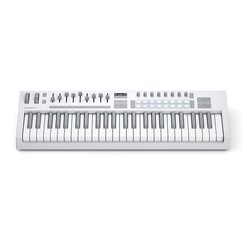 اما طراحی تنها به ظاهر خلاصه نمیشود؛ Launchkey 49 MK4 با 16 پد RGB حساس به ضربه، 8 ناب قابل چرخش (rotary knobs)، 9 فیدر و دکمههای اختصاصی برای کنترل پارامترهای نرمافزاری، امکان اجرای زنده، تنظیم صدا و مدیریت پروژه را در اختیار شما قرار میدهد. تمام این ویژگیها در ترکیب با فرم بدنه سبک، مقاوم و قابل حمل، Launchkey 49 MK4 را به گزینهای ایدهآل برای استودیو و اجراهای روی صحنه تبدیل کرده است.