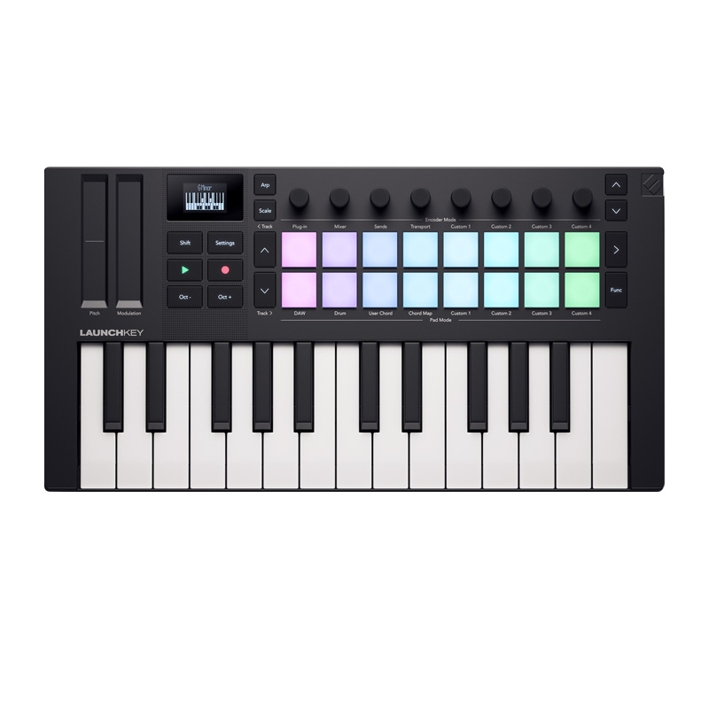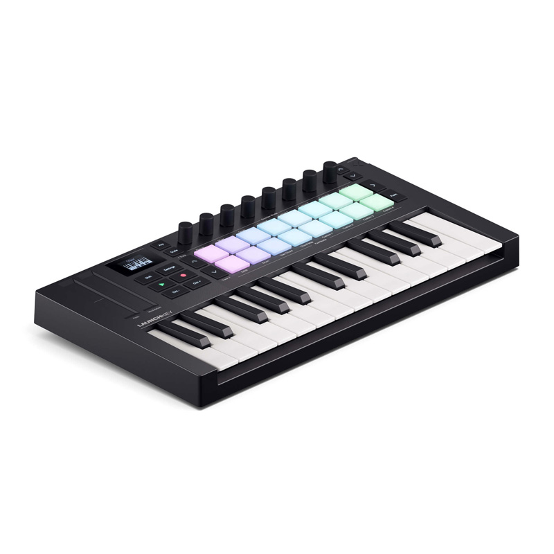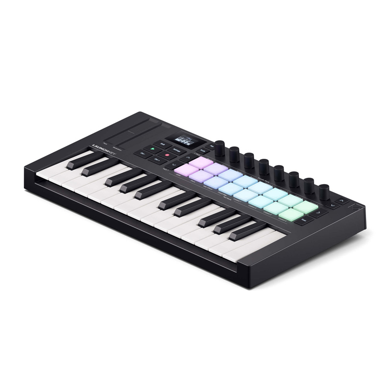 این میدی کنترلر جمع و جور، با ۲۵ کلاویه حساس به شدت ضربه (velocity-sensitive)، یک رابط کامل برای نواختن صداهای مختلف از بانک صدای شماست. کلاویهها از نوع synth-action طراحی شدهاند تا پاسخ دقیق و سریع به لمس انگشت ارائه دهند، ویژگیای که مخصوصاً برای سبکهای مدرن موسیقی نظیر الکترونیک، هیپهاپ و پاپ حیاتی است.