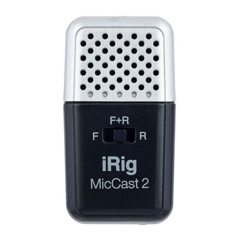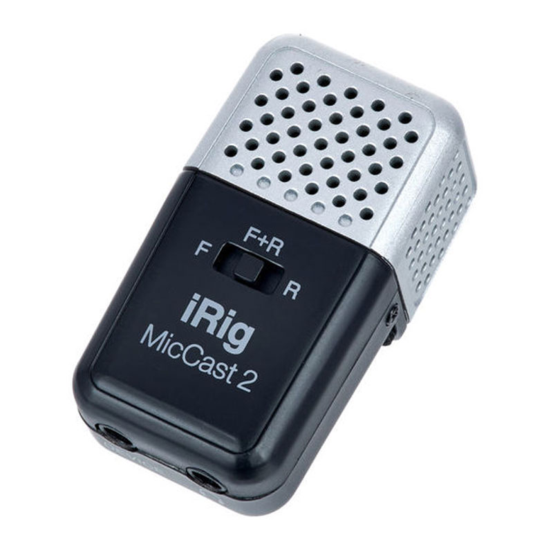 IK Multimedia iRig MicCast 2 ابزاری ساده برای داشتن صدای فول رنج در ویدیوهایی که با گوشی و تبلت ضبط می کنید است و همچنین با استفاده از آن می توانید مصاحبه ها و دموهای موسیقی خود را با کیفیت بالاتری ضبط کنید. MicCast 2 مستقیما و به صورت آهنربایی به دستگاه شما متصل می شود و شما می توانید آن را روی میز بگذارید و یا به صورت دستی از آن استفاده کنید. فرم فاکتور این محصول به قدری کوچک است که وقتی کارتان تمام شد می توانید آن را در جیب شلوارتان قرار دهید. پنل جلوی MicCast 2 به شما اجازه می دهد کپسول های کاندنسر جلو، عقب (یا هر دو) را انتخاب کنید تا صرف نظر از این که برای تصویربرداری از دوربین جلوی دستگاهتان استفاده می کنید یا دوربین عقب، ضبط صدای ایده آلی داشته باشید. یک خروجی هدفون برای مانیتور کردن صدا در حین ضبط و یک پاپ شیلد برای دفع صدای باد هنگام ضبط در محیط بیرون نیز در اختیار شما قرار گرفته است.