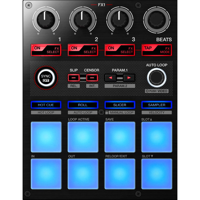 پدهای DDJ-SP1 مانند پدهای درام هستند اما کارکردهای مختلفی دارند. این پدها به شما اجازه ی استفاده از سمپل ها، افکت ها، لوپ ها، هات کیوها و...را می دهند. DDJ-SP1 همچنین برای ورود به حالت Slip mode (در نرم افزار Serato DJ) یک دکمه اختصاصی در نظر گرفته است. Slip mode به شما کمک می کند تا بعد از انجام ادیت های مختلف به جای درستی از ترک برگردید. علاوه بر این، شما به دو قسمت افکت یکسان، کنترل هایی اختصاصی برای جستجو و حتی کنترل هایی اختصاصی برای Serato Video دسترسی خواهید داشت.