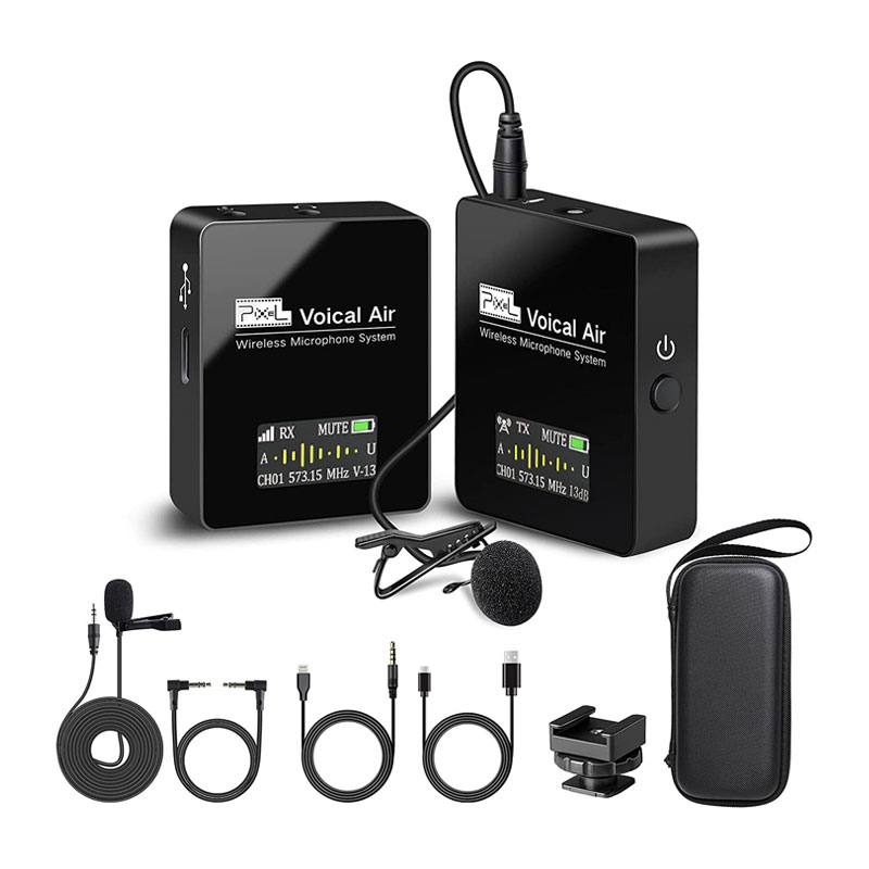 میکروفون Pixel Voical Air فرستنده و گیرنده سیستم میکروفون بی‌سیم فشرده برای دوربین، موبایل های هوشمند، DSLR، با صفحه نمایش OLED رنگی