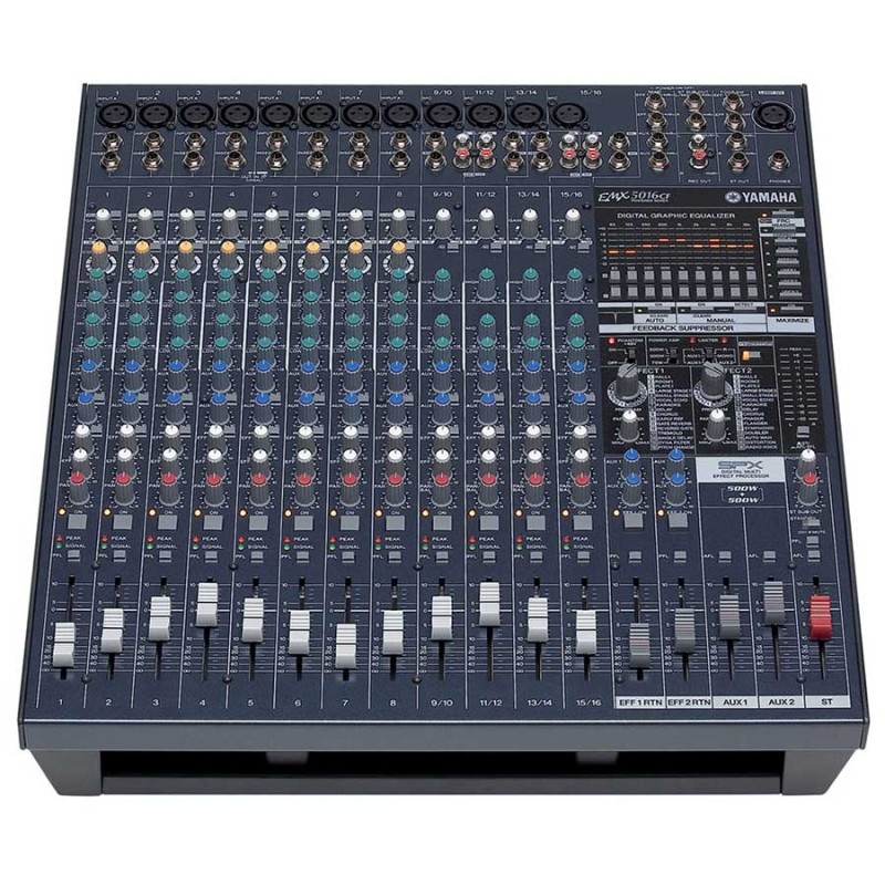 16-input, 500W Powered Mixer with Onboard Compression, 3-band EQ, Digital Graphic EQ, Frequency Response Correction, Feedback Suppression, Onboard Dual Effects Processors, and Maximizer