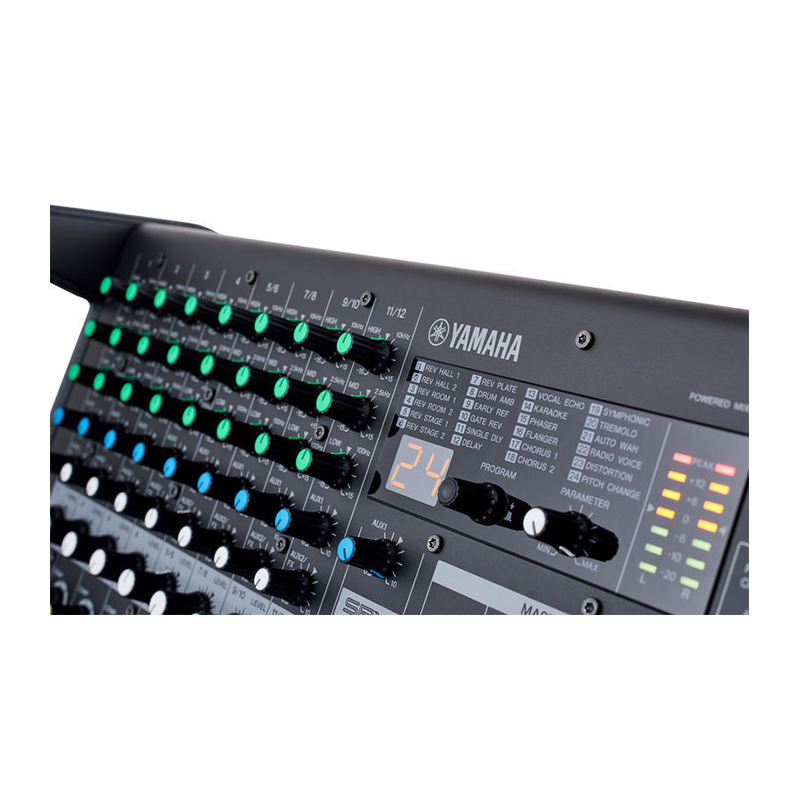 12-input, Dual 630W Powered Mixer with 8 Mic Preamps, 3-band Input EQs, 1-knob Comps, 1-knob Master EQ, Phantom Power, Level Meters, and Onboard DSP