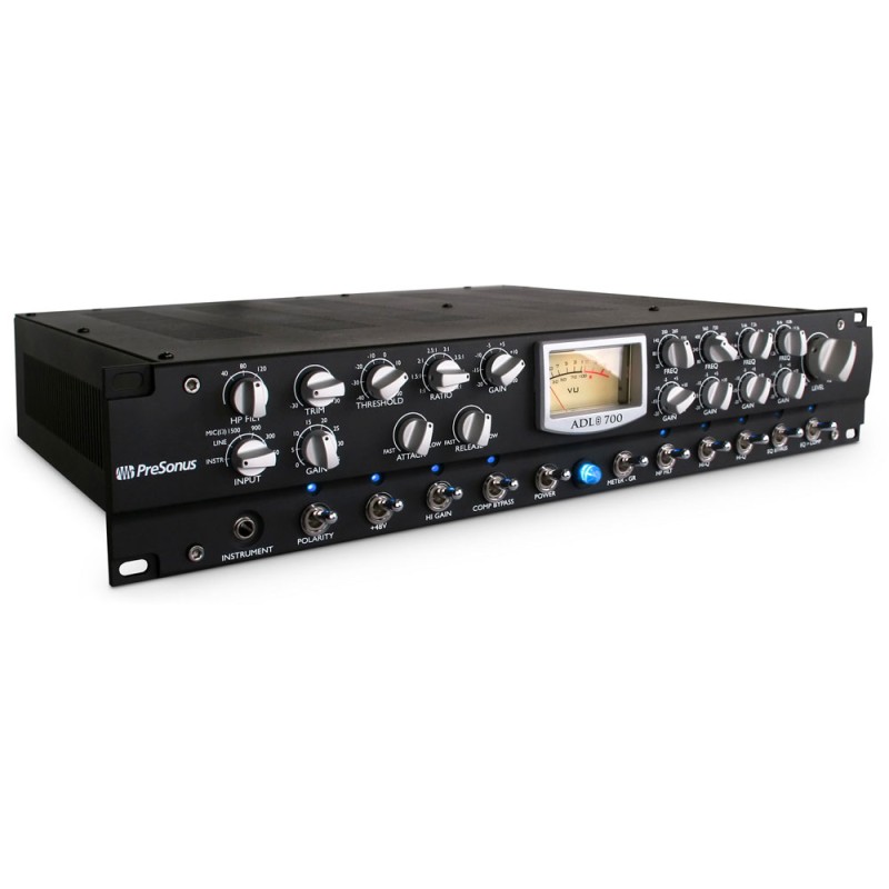 قسمت کمپرسور PreSonus ADL700 دارای یک کمپرسور VCA مدار گسسته بر پایه FET همراه با کنترل های قابل تغییر threshold ،ratio ،attack ،release و make-up gain می باشد. کمپرسور FET نسبت به مدارهای اوپتیکال به ترانزینت ها سریع تر پاسخ می دهد و به همین جهت حفاظت بیشتری در برابر پیک ها از خود نشان خواهد داد.