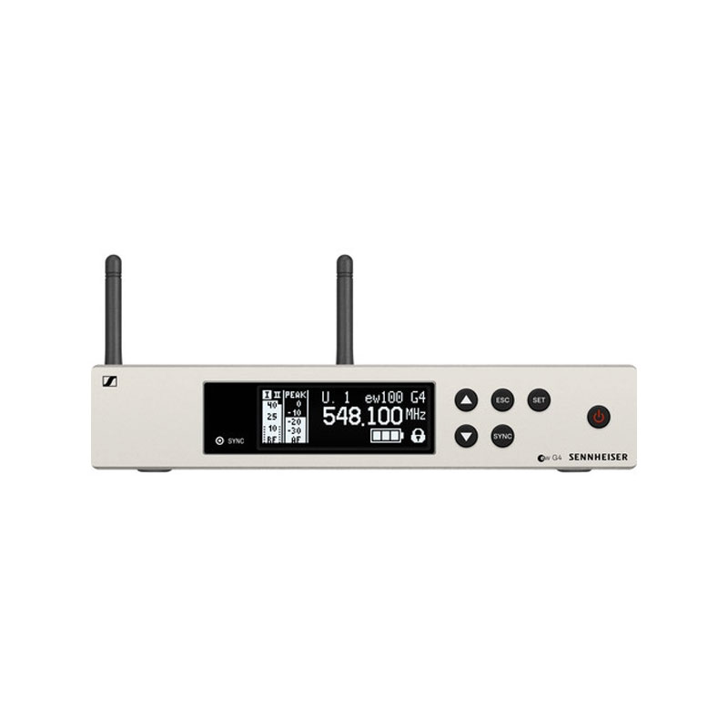 میکروفن بیسیم Sennheiser EW 100 G4-ME2 شامل فرستنده ی کمری، میکروفون یقه ای چند جهته ی ME 2-II و گیرنده ی رک مونت با قابلیت اسکن خودکار روی تمام گیرنده ها برای انتخاب ساده و امن فرکانس ها