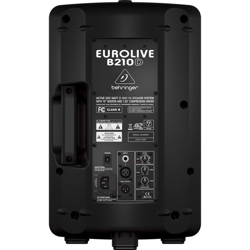 اسپیکر های سری D بهرینگر دارای پاور امپلی فایر با کلاس D بوده که برای اجراهای زنده خود را بسیار مناسب معرفی کرده اند. اسپیکر پرقدرتی همچون B210D با 220 وات توان خروجی می تواند امکان این را فراهم کند که هر صدایی را در محیط های متوسط به راحتی به شنوندگان تقدیم کند. ووفر 10 اینچی پرقدرت به همراه توییتر 1.35 اینچی دای اکولایزر دو باندی برای تنظیم باس و تریبل از مشخصات این اسپیکر زیبا می باشد. شما شایسته کیفیت هستید.
