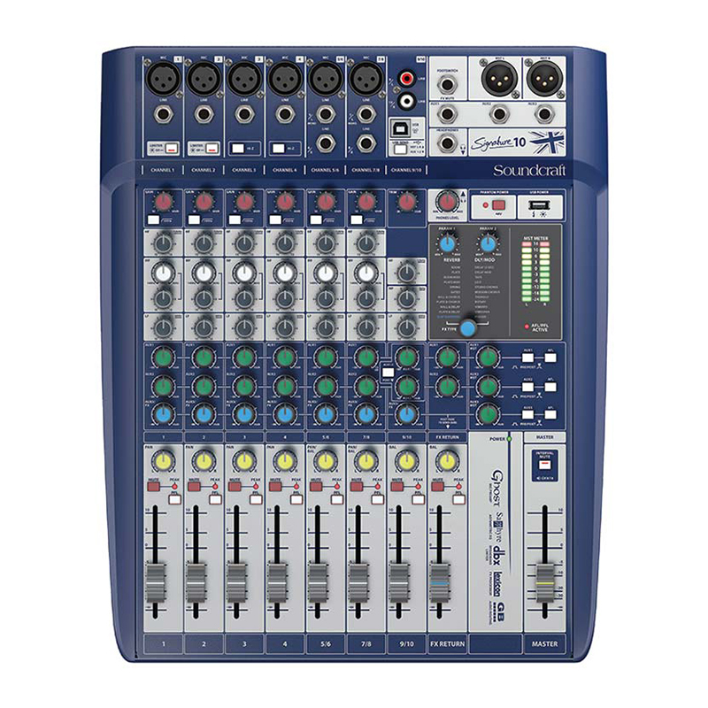 10-ch Mixer with 6 x Ghost Mic Preamps, 2 x Aux Busses, 3-band British EQs, Lexicon Effects, dbx Limiters, Switchable hi-Z Inputs, and USB Playback and Recording