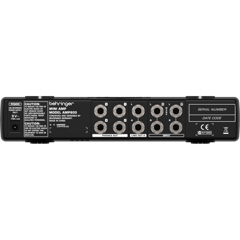 Behringer AMP800 MiniAMP یک امپلی فایر هدفون استریو، مجهز به ۴ بخش امپلی فایر استریو و کاملا مستقل است. این دستگاه همچنین مجهز به کنترل هدفون و ال‌ای‌دی دقیق ۶ رقمی در هرکدام از کانال‌ها برای مانیتورینگ بهتر میکس است. در میکس‌‌ها به ۲ ورودی اصلی استریو با کنترل‌های سطح و بالانس مجزا دسترسی خواهید داشت و یک نمایشگر ال‌ای‌دی سطح ورودی را به اطلاع شما می‌رساند. همچنین دو ورودی هدفون در پنل جلویی و پشت هرکدام از کانال ها به شما اجازه می‌دهد که از ۸ میکروفون برای مانتیور میکس‌های خود بهره بگیرید. خروجی موازی دستگاه نیز به شما کمک می‌کند که چندین امپلی فایر هدفون را به صورت سری به یکدیگر متصل کنید. AMP800 مجهز به پتانسیومتر (برای محافظت از دستگاه) است و با استفاده از امپلی فایرهایی با نویز بسیار پایین، عملکردی بی‌نظیر را به شما ارائه می‌کند. در کنار تمامی این امکانات، هرکدام از پردازنده‌های بهرینگر می‌توانند به یکدیگر متصل شوند تا به مجموعه‌ای از پردازنده‌های سیگنال در ابعاد بسیار کوچک تبدیل شوند.
