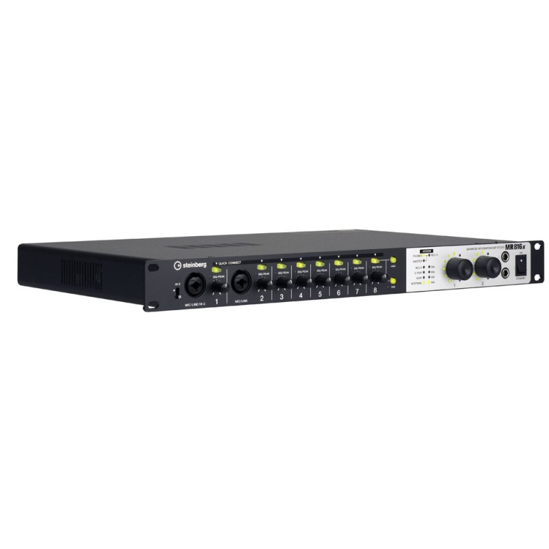 MR816 X یک کارت صدای FireWire با شانزده ورودی و شانزده خروجی می باشد که البته قابلیت هایی بسیار بیشتر از این ورودی و خروجی ها را در اختیارتان می گذارد. این کارت صدای نسل جدید، قدرت افکت های آن-بورد دی اس پی را ارتقا داده و تکنولوژی های هماهنگی با نرم افزار Cubase را در خود جای داده تا انتخاب ایده آلی برای استودیوهای حرفه ای، استودیوهای کوچک و کسانی که مدام در حال جابجایی هستند باشد. با Steinberg MR816 X، هشت عدد پری امپ با طراحی جدید Class A "D-Pre" با اتصال ترکیبی XLR/TRS و ویژگی های حرفه ای مانند ورودی/خروجی ADAT، ورودی/خروجی word clock و ورودی/خروجی S/PDIF در اختیارتان قرار می گیرد. اگر از Cubase یا دیگر نرم افزارهای ساخت موزیک استفاده می کنید، قابلیت های خارق العاده ای از این کارت صدا خواهید دید.