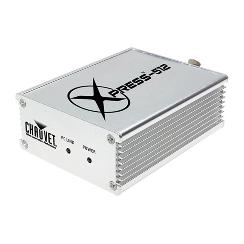 Xpress 512 is a self-contained DMX-512 interface for the ShowXpress software. The interface is capable of transmitting one universe of DMX and works on both Windows and Mac OS X platforms. Multiple units can be connected for multiple universes of control. Users can store and playback one show without a computer or unlimited shows with a computer.