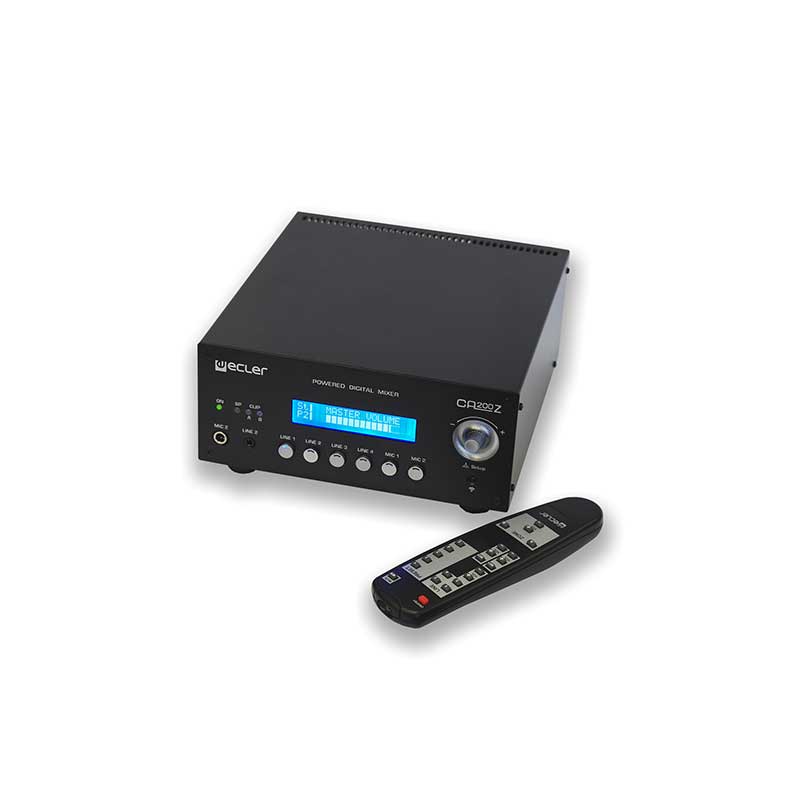 The CA200Z is a compact digital mixing amplifier with 2 x 70 WRMS output zones and 6 audio inputs, together with a full and smart set of remote control options.