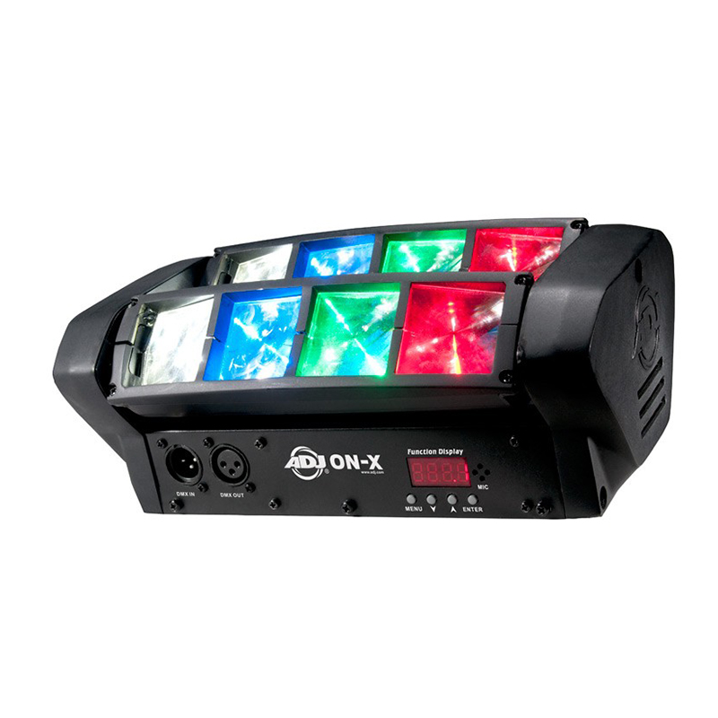 The ON-X is a dual LED Sweeper from ADJ. It creates an exciting and dynamic, sweeping beam effect across an entire dance floor. It uses Red, Green, Blue and white high powered LEDs to produce sharp beams of color light. ON-X is equipped with fast high speed Stepper motors for accurate and faster movements. Compatible with the UC IR and Airstream IR wireless controllers.