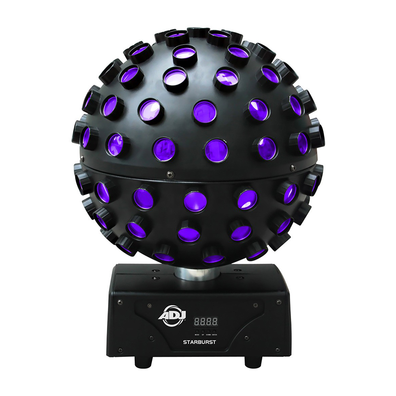 Part of the ADJ Startec Series, the Starburst is a LED sphere effect that rotates to your music while shooting out super-sharp, multi-color beam effects. With a light source consisting of five 15W HEX (RGBWA+Purple) LEDs, the Starburst provides access to a wider pallet of colors than previously possible, giving you the flexibility and creative scope to entrance your audience with unique hues and attention-grabbing effects.