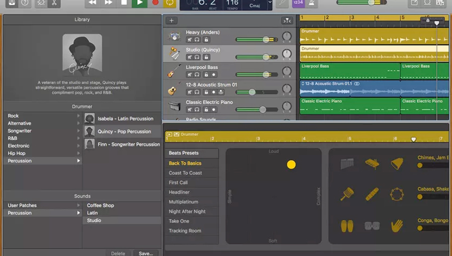 GarageBand مک واقعا نرمافزاری فوقالعاده قدرتمند برای آهنگسازی است. در نسخه ۱۰.۲ سه نوازنده جدید پرکاشن به قسمت Drummer اضافه شدهاند. اگر به این قسمت مراجعه کنید، با مجموعهای از صداهای ضبط شده از نوازندههای حرفهای پرکاشن مواجه میشوید که میتوانید از آنها جهت بهبود Track های ریتم خود بهره ببرید.