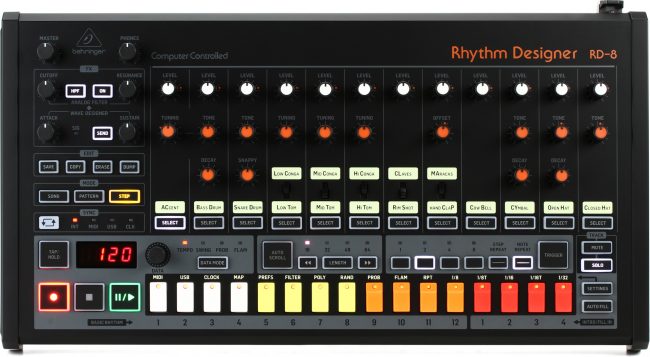 Behringer Rhythm Designer RD-8 Analog Drum Machine: بازسازی آنالوگی از TR-808، همراه با خروجی های مستقل برای هر صدای درام.